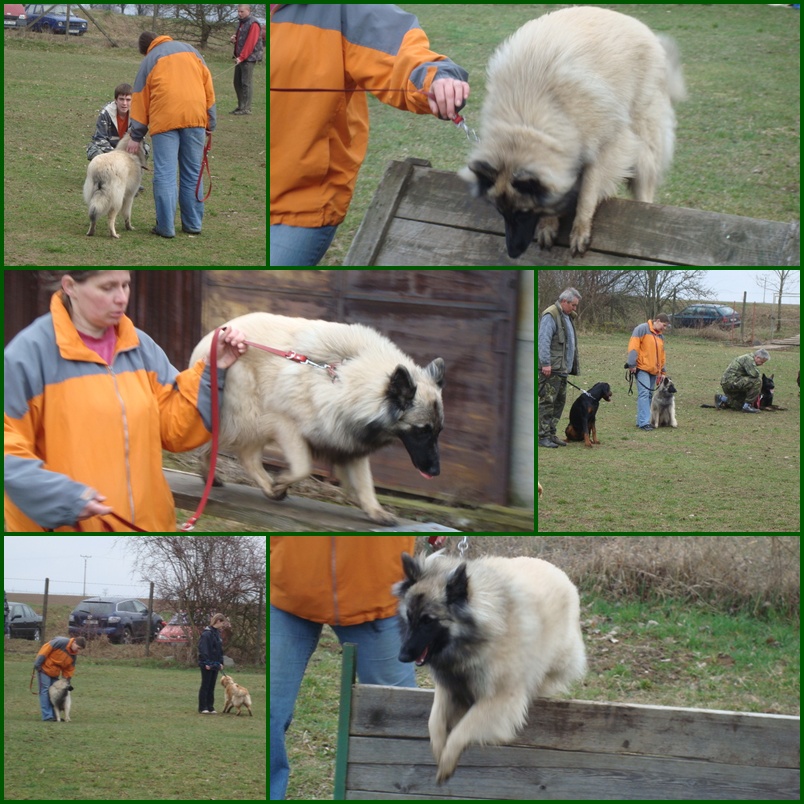 Konečně máme fotky z cvičáku jak Erinka překonává s obrovským soustředěním překážky a odmítá si všímat figuranta